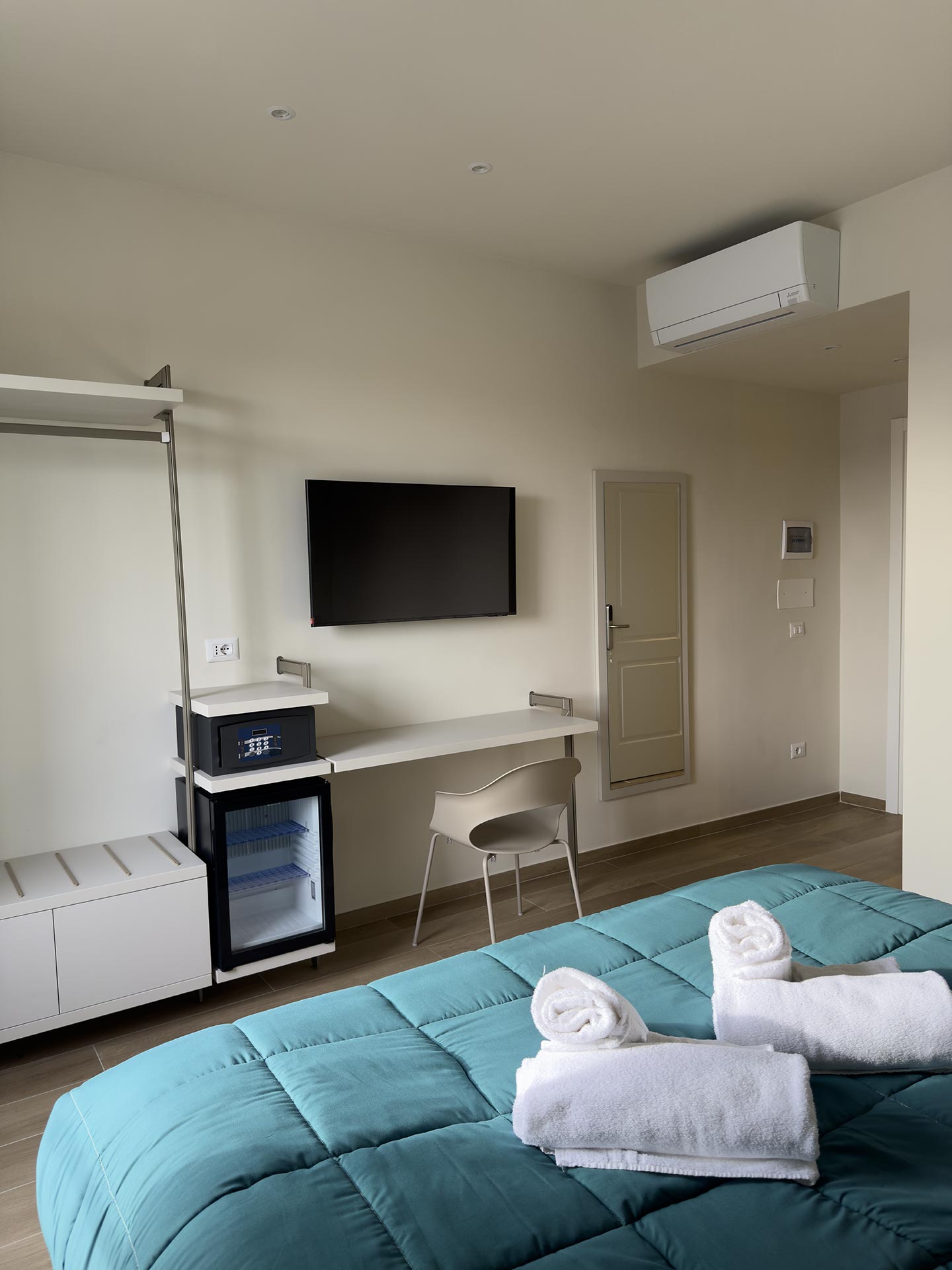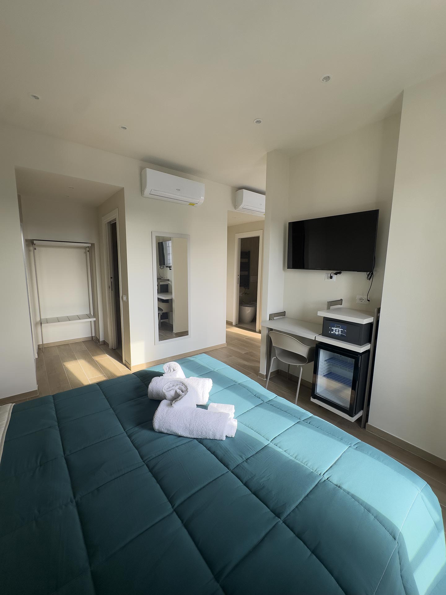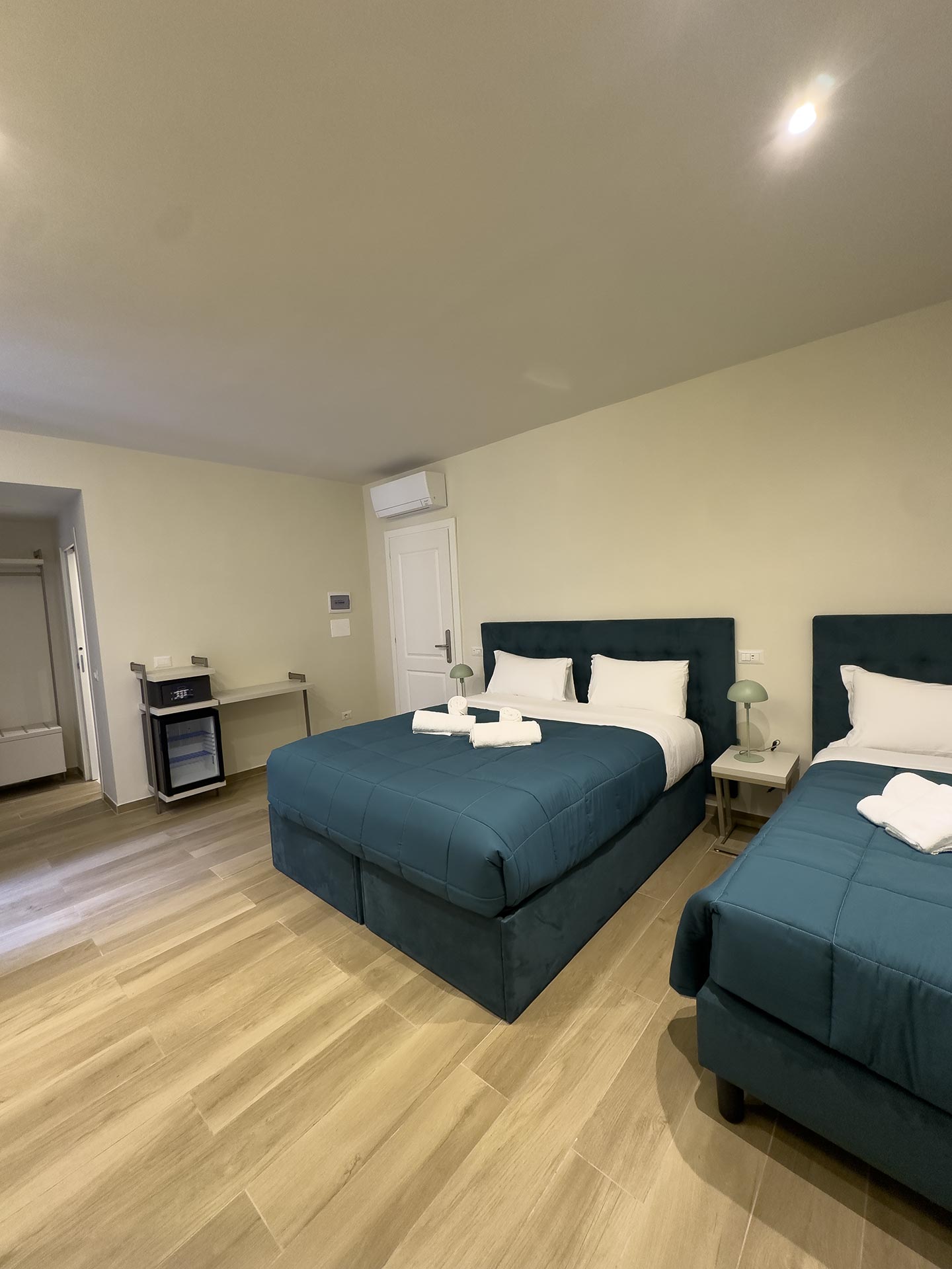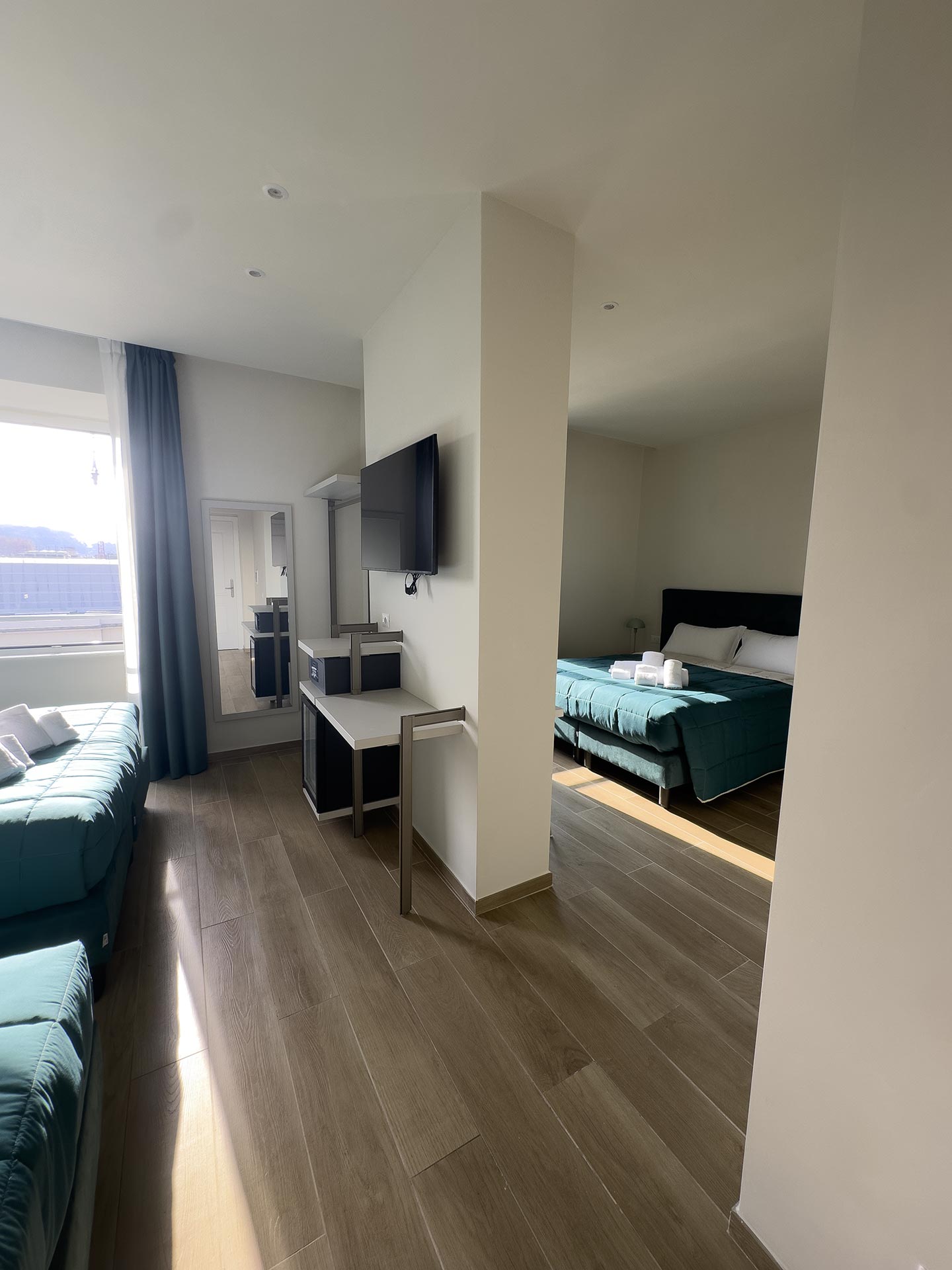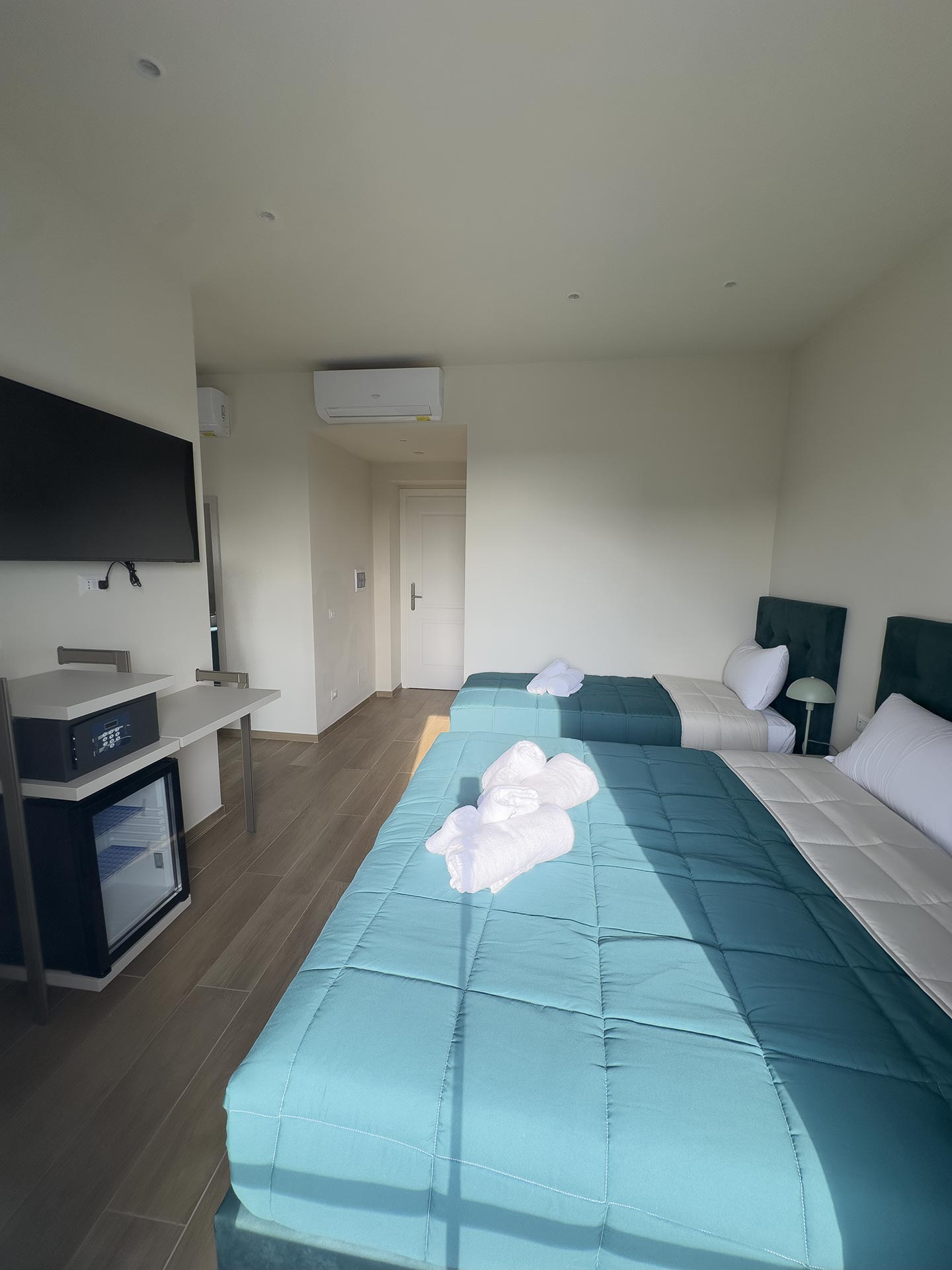 Le camere poste al quarto piano si compongono di una matrimoniale da 18mq, due quadruple da 30mq.